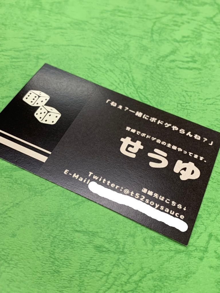 ボードゲームの店舗を開けるくらいの膨大な数のボードゲームを所持していらっしゃる主催:せうゆ様の名刺を今回作らせていただきました。