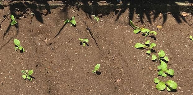 会社の駐車場わきに種をまきました。